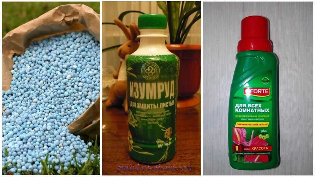 Подкормки делают минеральными веществами. С первых дней цветения и до его окончания подкормки вносят для цветущих культур. После цветения необходимы удобрения для лиственных культур. Достаточно вносить удобрения 2-4 раза в месяц.