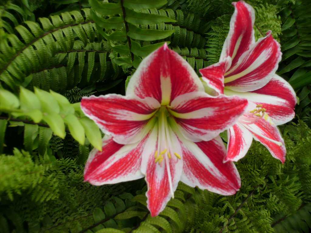 Гиппеаструм Леопольда имеет луковицу среднего размера – 5-8 см и листья, достигающие длины 60 см. Цветки с красными, на кончиках белыми лепестками и зеленовато-белым зевом.