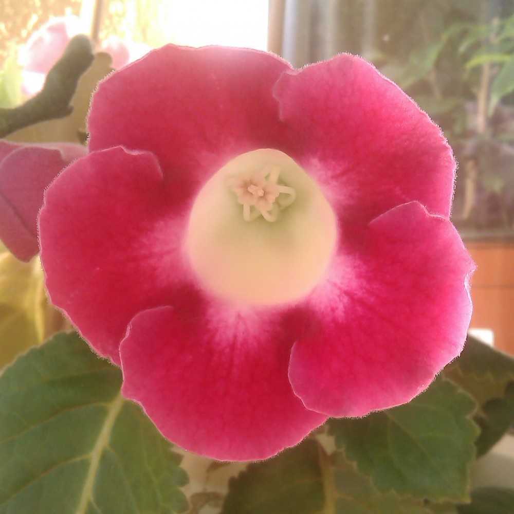 Глоксиния «Розалинда» — компактная, но со временем диаметр розетки листьев может превысить 25 см. Цветки колокольчатой формы с тонким ароматом. Лепестки белоснежные с малиновой каймой. Цветение обильное, продолжительное.