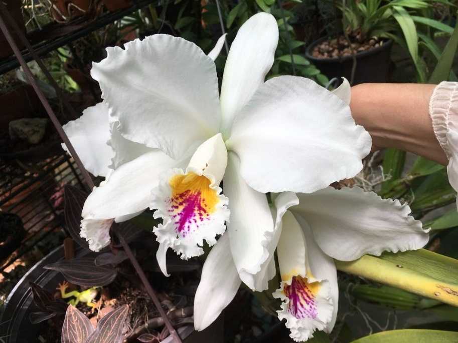 С октября по январь зацветает Большая каттлея, которая пришла в Европу из Перу, Колумбии, Эквадора. На ее соцветиях бывает от 3 до 15 цветков, диаметр которых может достигать целых 17 см. Псевдобульбы однолистные и имеют форму цилиндра. Красивый лиловый или лавандовый оттенок цветков разбавляется прожилками пурпурно-фиолетового цвета.
