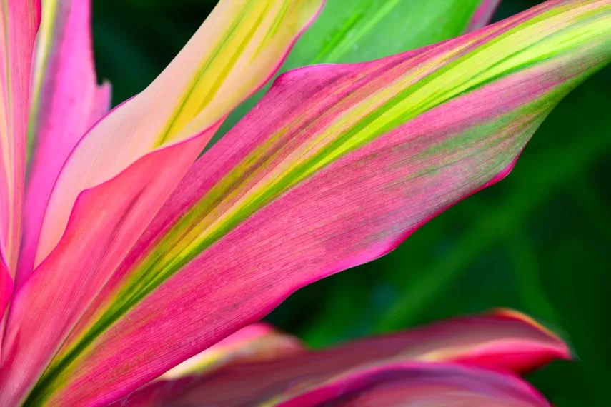 Пестрые разновидности выглядят особенно эффектно. Листья кордилины часто сочетают сразу несколько цветов: продольные полосы могут быть окрашены в розовый, желтый, красный, бордовый, коричневый, кремовый или белый цвет.