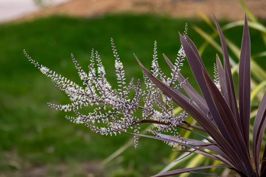 Цветет кордилина мелкими невзрачными цветками, собранными в метелку. В домашних условиях цветущей ее можно увидеть редко – обычно это происходит в естественных условиях или в оранжерее.