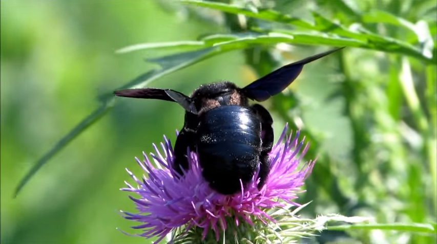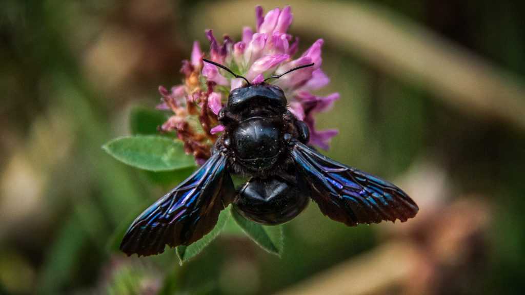 Чем опасен этот красивый шмель? Самцы фиолетового шмеля-плотника лишены способности жалить, хотя могут преследовать нарушителя границ его территории. Ужалить может пчелка самка, но беспричинно нападать не станет, в большинстве случаев просто улетит, увидев человека. Одиночные древесные пчелы как разновидность характеризуются низким уровнем агрессии, в отличие от медоносных пчел (уровень агрессивности – средний), или осы (высокий). Черный шмель – не исключение.