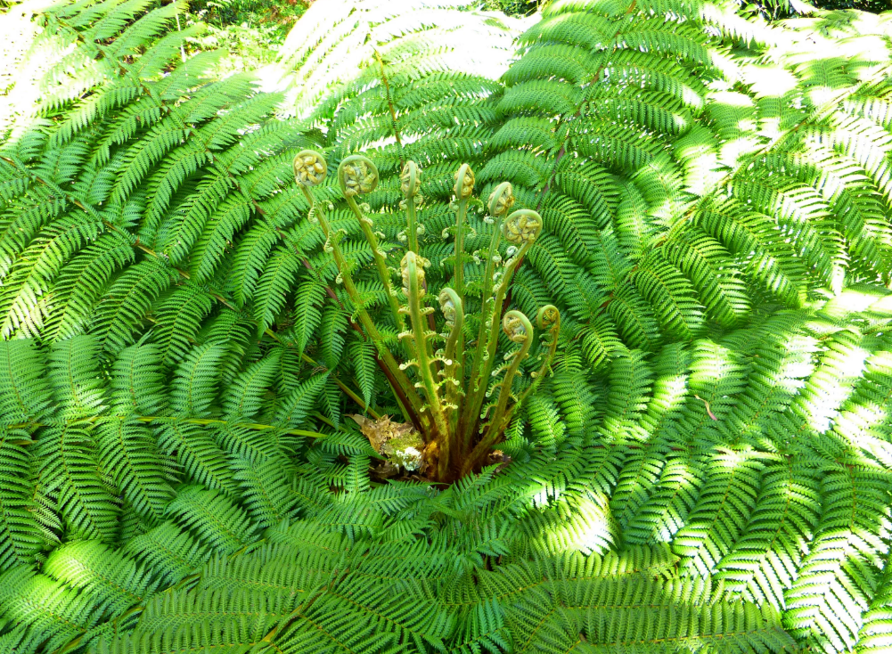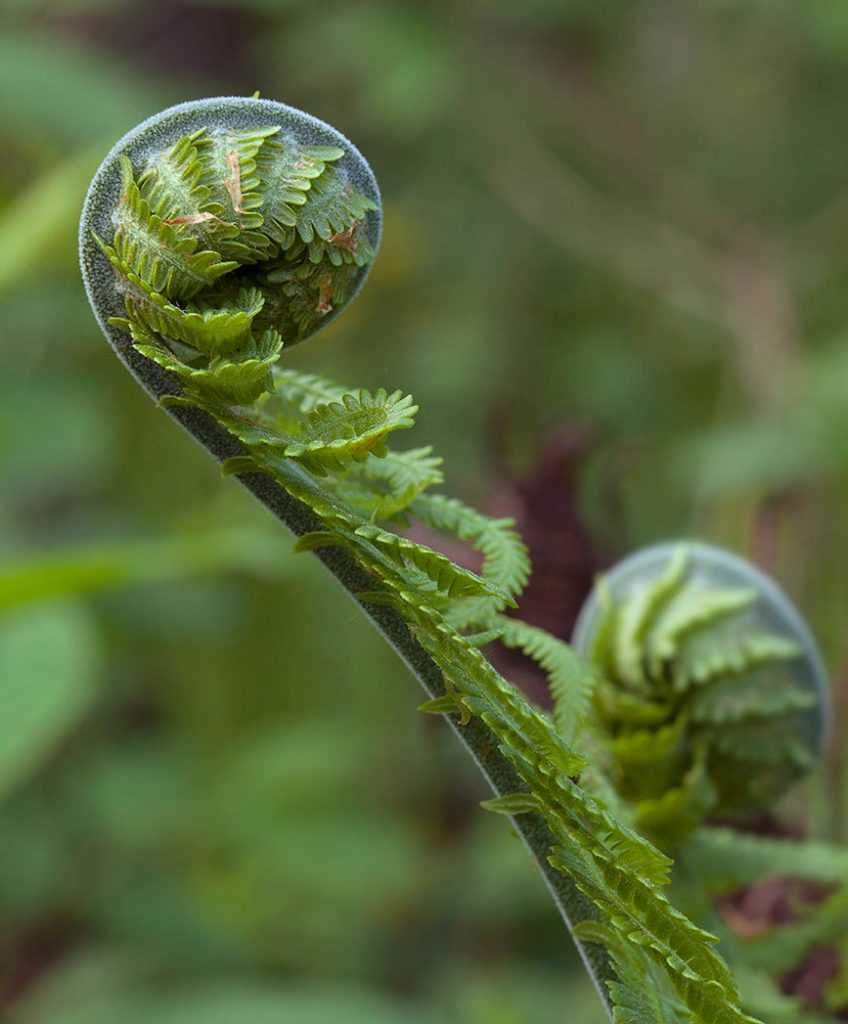 В литературе, описывающей строение папоротниковидных , обычно указывают, что для них характерно наличие крупных листьев, так называемая макрофилия. В нижнем ярусе леса нередко можно увидеть крупные сложно-расчлененные зеленые веточки папоротников, часто напоминающие крупные перья. Один из видов так и называется – страусник. Эти зеленые «перья» вырастают из подземного корневища. Пока молодые, они свернуты в улитку. Вырастая, они расправляются, образуя иногда сплошной покров. У листьев папоротников есть собственное название – вайи.