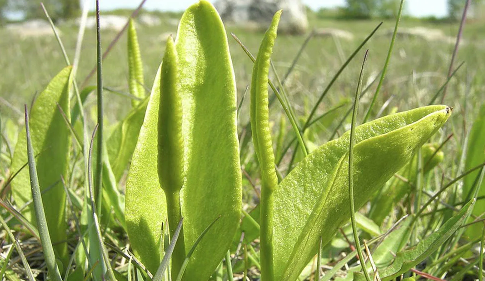 Ужовник. Покрыт листьями необычной формы. Они выглядят, как колоски.