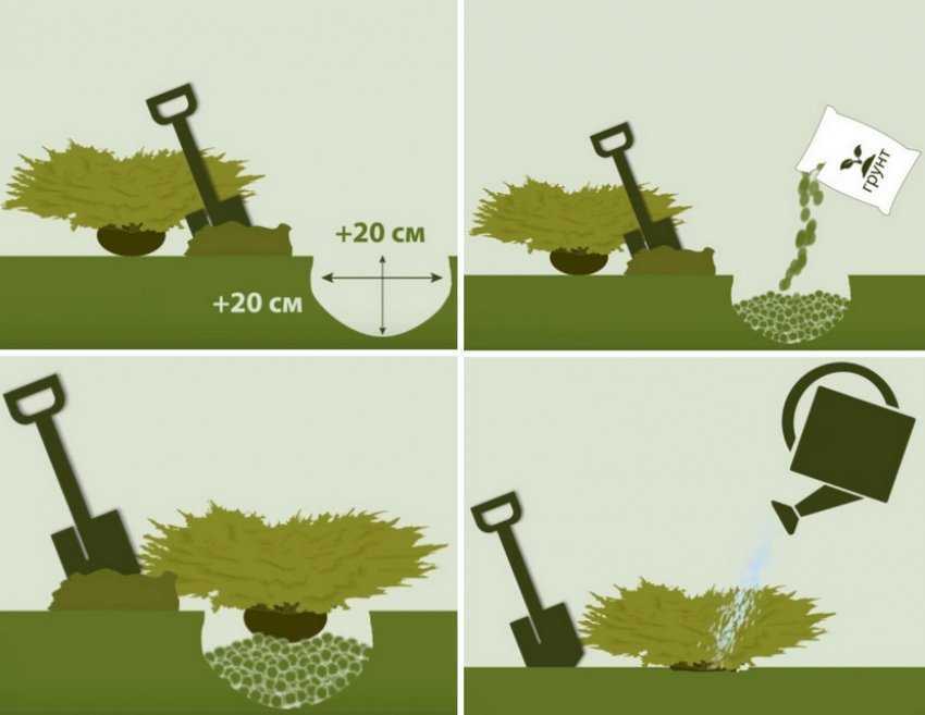 Чтобы посадить можжевельник pfitzeriana, необходимо соблюдать такую последовательность действий: