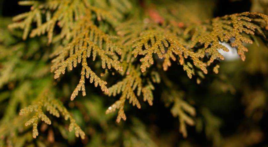 В осенний период у многих представителей, например, туи Брабант, можно наблюдать потемнение верхней области чешуек туи. Внешне это выглядит как частичное изменение окраски.