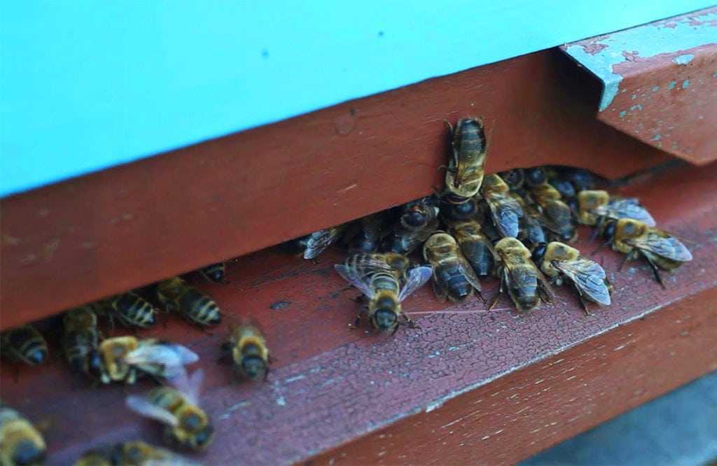 Пчелы выгоняют трутней из улья
